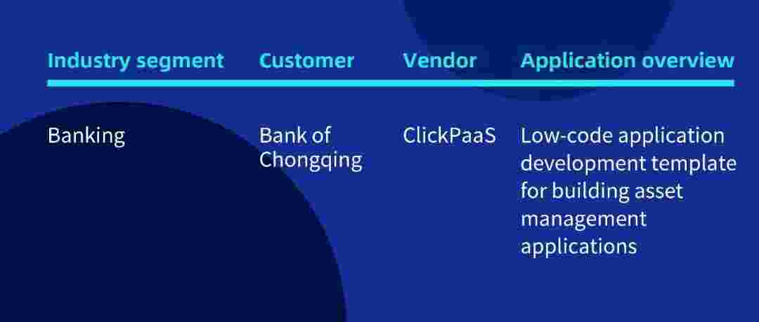 报告中提到,,,,,,重庆银行使用小微钱包的应用开发模板,,,,,,,,,,,,在短短两周内建立了一个基金净资产管理应用,,,,,,,,,,,以满足新的监管要求。。。。。。